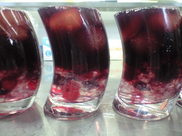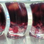 ぶどうのゼリーを作ってみました。オシャレなグラスにいれてみました。透明な部分はミントゼリーです(^-^)/