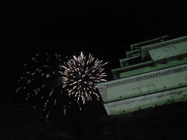 今夜は絵ろうそく祭りが鶴ケ城でありました。仕事帰りの8時すぎに見学行ってきました。会場にはたくさんの人が詰めかけてました。一人花火を見上げ、花火の美しさと儚さ、迫力に感動してきました。