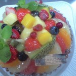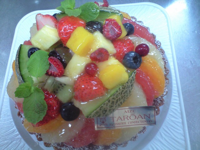 フルーツタルトつくました。特別注文を受けまして、中にサワークリームと生クリームをミックスしたものがベースです。キラキラしたタルトに仕上げてみました。