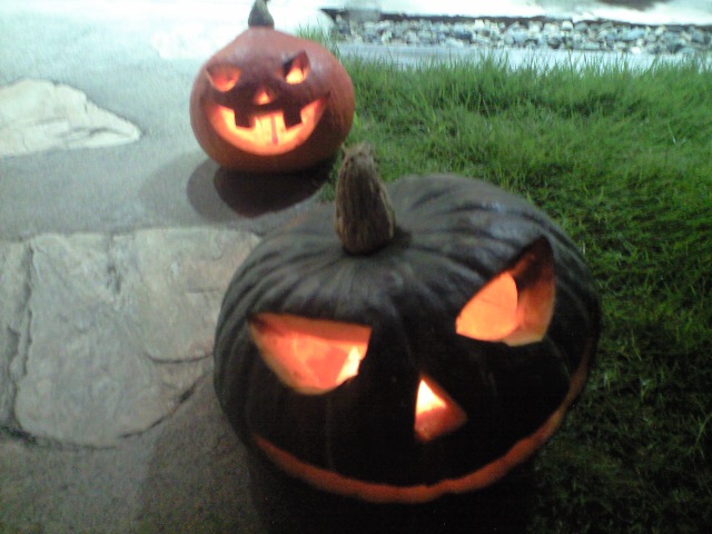 昨日にいでら工房にて、かぼちゃをくりぬきハロウィン用のディスプレイを作ってみました。中にろうそくを灯して幻想的になります。