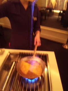 ワイングラスにオレンジのリキュールのグランマニエを入れて