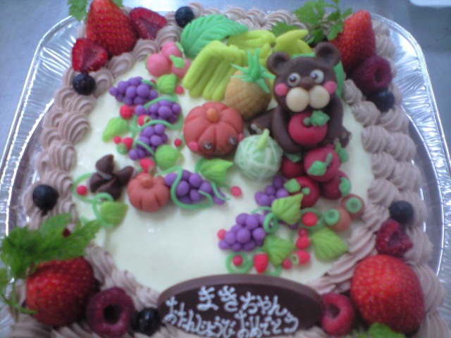 今日も朝からわくわく様です。 昨日のマジパン飾りをケーキと合わせてみました。マキちゃんもとっても喜んでいただけたようで、嬉しいです(‘-^*)/ お客様のお喜びの日にお役にたてるこの仕事を私は誇りに思います(^-^)/