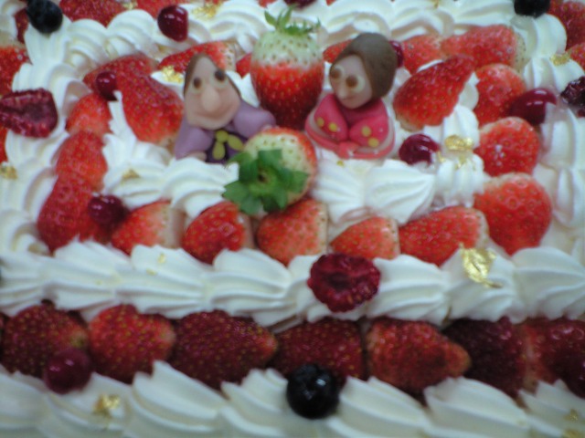 今日もわくわく様です(^-^)/ 今日はお客様のご要望で七五三のケーキを作ってみました。 マジパンの人形を七五三っぽくしてみました(・ω・)/