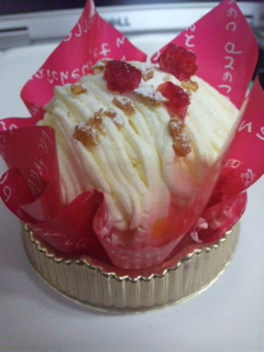 ロールケーキベースに トロピカルソースとアップルマンゴー、 生クリームとマンゴークリームで モンブランっぽくしちゃいました(^O^)