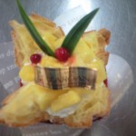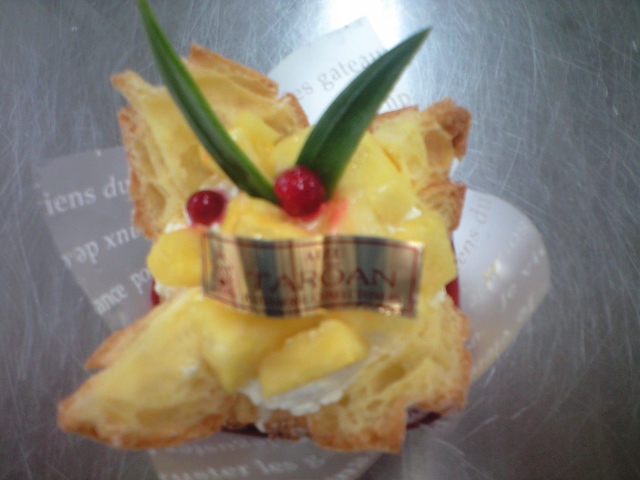 トロピカルプリンシューはパイナップルの飾り付けの下は生クリームとプリンがかくれんぼ(^O^)/