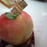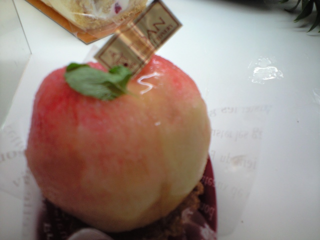 桃の中にはカシスソースとカスタードクリームと生クリームがタップリです。土台は自家製タルト。