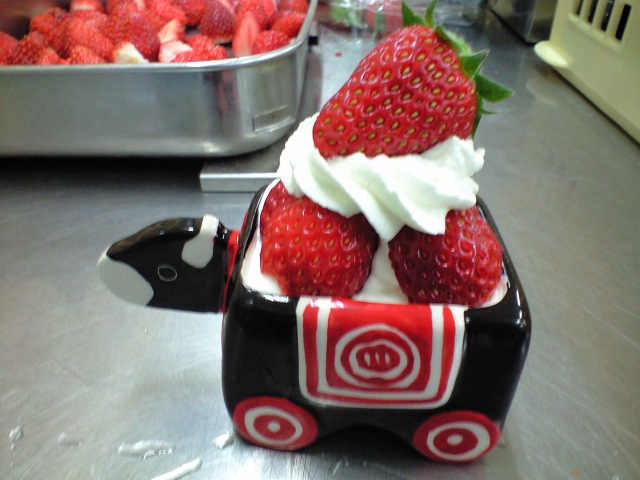プリンアラモードも牛の限定カップでカッコよく仕上げたつもりですo(^-^)o