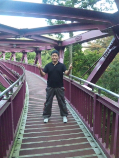 山中温泉で朝散歩。 アーティスティクな 『あやとり橋』 ん~これから散歩の始まりわくわくしますね(^O^)