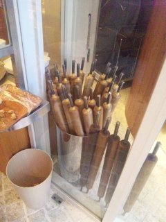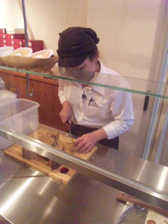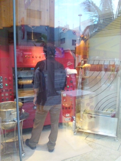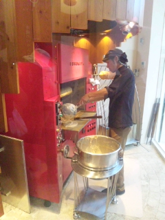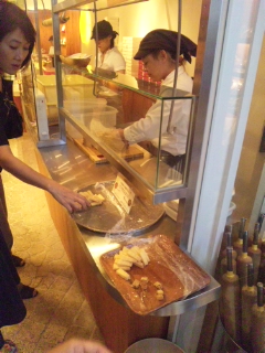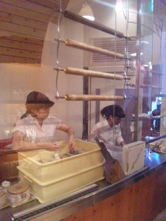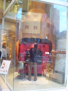 通り沿いでガラス越しにバームクーヘン焼いてました!