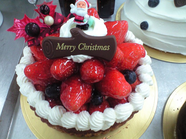 カスタードクリームをたっぶりしのばせた イチゴ盛り盛りのクリスマス用イチゴタルトですo(^-^)o