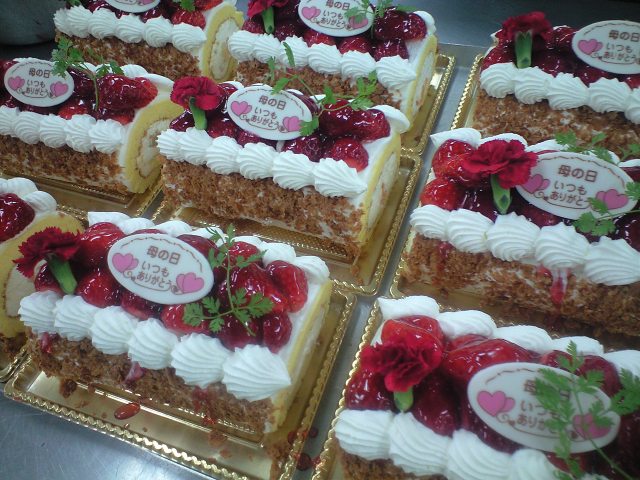 明日は母の日(^O^)/ 今日から母の日のケーキを店頭に並べました。