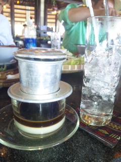 ベトナムのフィルターでいれるアイスコーヒー。