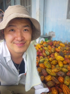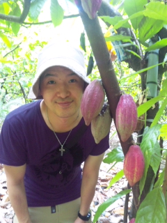 カカオ農園で