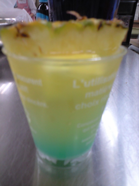 パイナップルのゼリーにブルーキュラソーをあわせました。