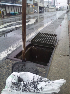 今日は雪の中、町内の行事で坂下店前のドブ掃除(^O^)