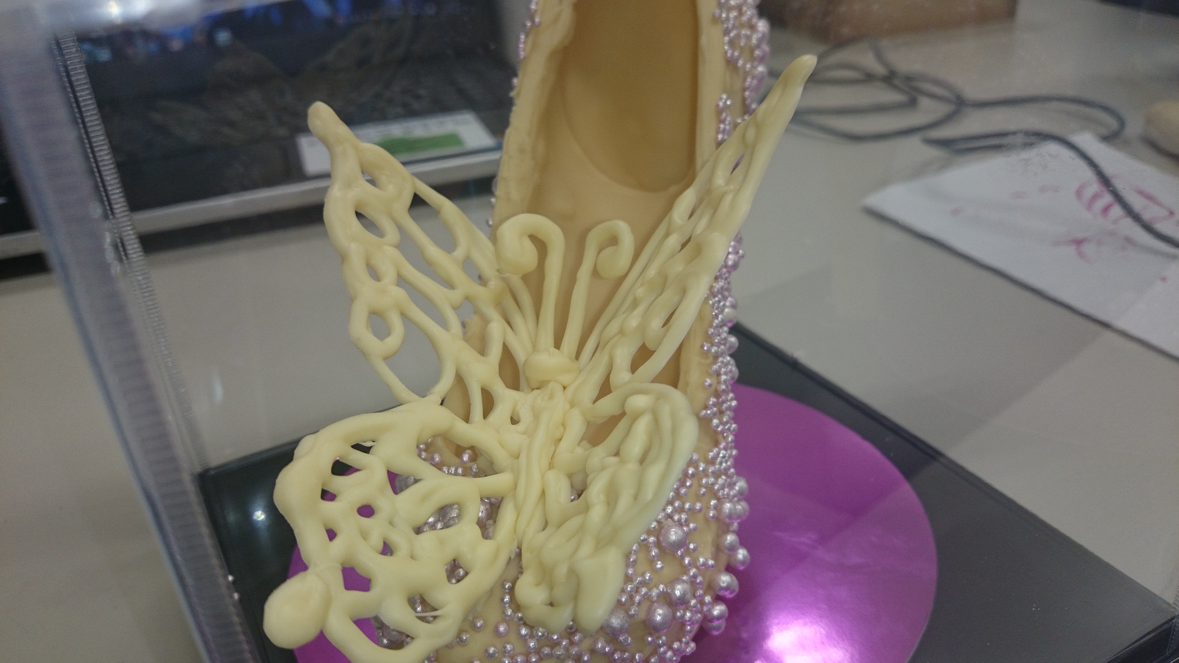 ホワイトチョコレートのハイヒールに蝶を付けてみた件~(*^^*)