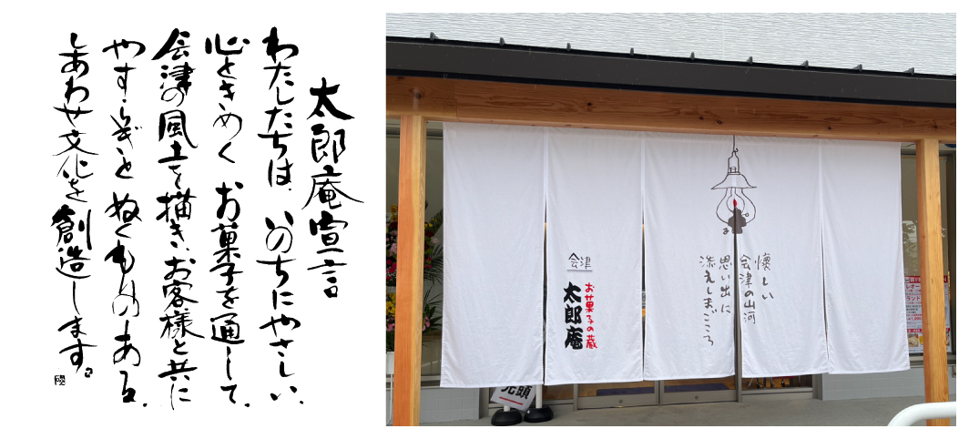 僕の父が太郎庵を創業したが、「会津坂下町の裏通りにある店を表通りに出したい」「苦労している両親に親孝行したい」「お菓子で会津を応援したい」「会津にあって日本を代表するお菓子屋になりたい。だから、太郎庵にしよう」「お菓子で人の心に温もりを伝えたい」「情熱と温もり、シンボルマークをランプにしよう」そんな夢溢れる父を尊敬すると共に嫉妬しました。