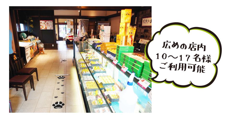 ゆったりとくつろぎながら会津銘菓のお買い物をお楽しみいただければと思います。