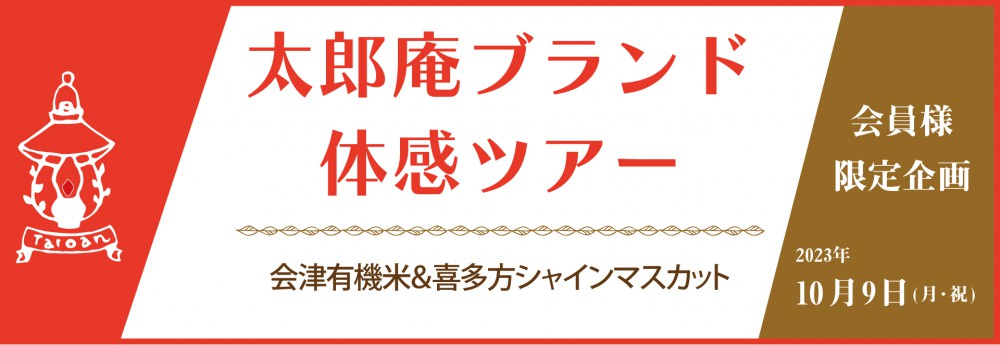 【スケジュール】太郎庵本社出発→「会津有機米」田んぼ見学→「シャインマスカット」穴澤果樹園直売所”よってって”にてお買い物→太郎庵本社到着(お土産お渡し)解散。