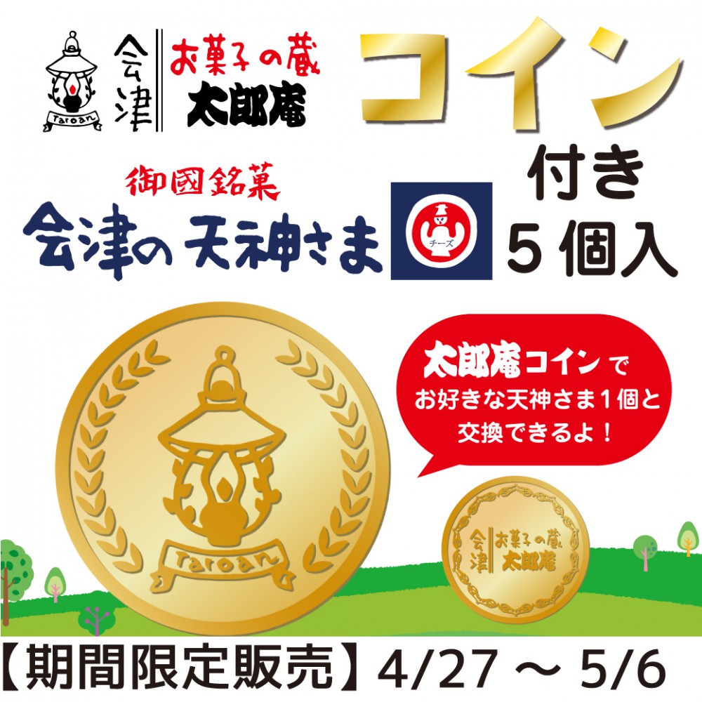 【ゴールデンウィーク限定】 太郎庵コイン付き 会津の天神さま5個入販売