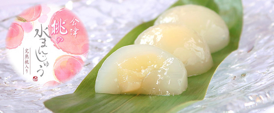 福島県産の桃の果肉をつるん・ぷるんとした水まんじゅうで包みました。