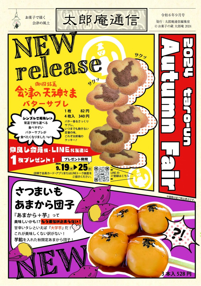 秋の新発売!【会津の天神さま バターサブレ】【さつまいものあまから団子】