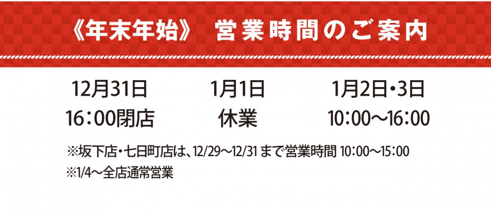 ※1月2日・3日全店営業時間 10:00〜16:00 ※店頭販売のみ ※太郎庵直営全店で販売いたします。