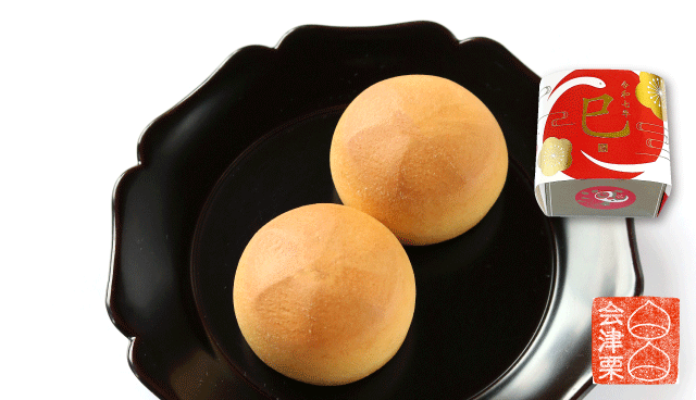 白あんに会津栗を刻んで加えた上品な甘さの焼き饅頭。