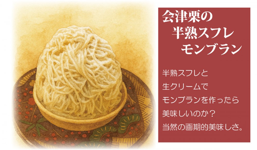 半熟スフレの上に会津栗モンブランペーストを絞りました。 おひとつ 750円税込