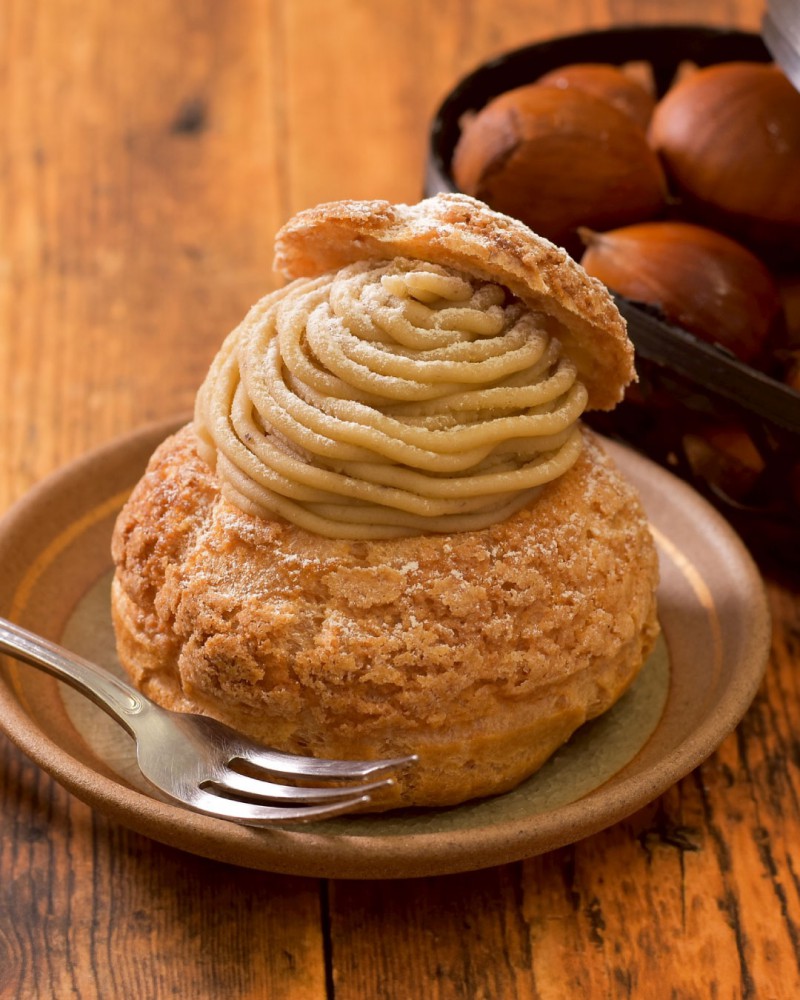 生カスターシューに会津栗モンブランペーストを絞りました。