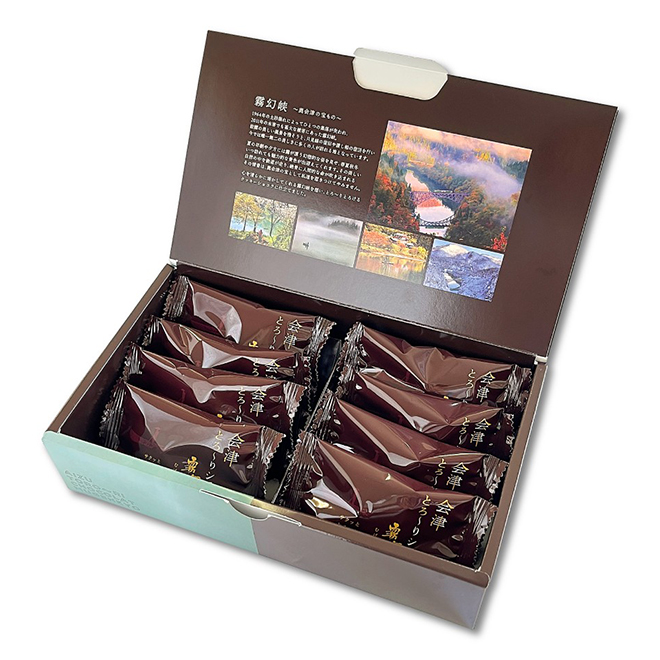 1964年、2011年の災害で甚大な被害にあいましたが、今では、夏の早朝や夕方には霧が漂う幻想的な姿を見せる、春夏秋冬いつ訪れても魅力的な、唯一無二の美しさに多くの人が訪れる地となっています。心を清らかに溶かしてくれる霧幻峡を想い、とろ〜りとろけるクッキーショコラに仕立てました。